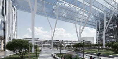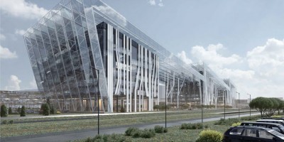 Вдоль нового здания со стороны Волковки отводится место под полотно скоростного трамвая, который отсюда пойдет в Славянку. Но его строить будет не «Адамант», а ООО «Балтнедвижсервис» (связано с Газпромбанком и группой «АБЗ-1»), с которым, как писал «Канонер», город в 2019 году заключил концессионное соглашение.