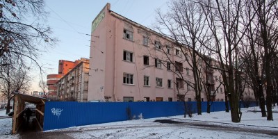 Раньше здесь стоял четырехэтажный дом в стиле конструктивизм, построенный в 1934 году по проекту архитектора Григория Симонова. Здание относилось к жилмассиву завода «Электросила». В начале 2014 года ООО «Интерконтракт» купило его с торгов. Год спустя советскую четырехэтажку снесли (сперва работы вело ООО «Петроэкология Северо-Запад», затем ООО «Капиталстрой»).