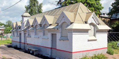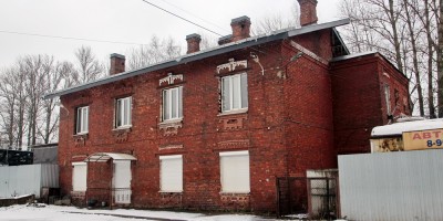 Одноэтажное краснокирпичное здание недалеко от станции Фарфоровской возведено до революции.