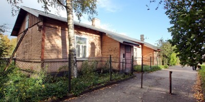 Одноэтажное деревянное здание построено до революции как жилой дом для сотрудников станции Пискаревка.