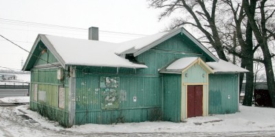 Одноэтажное здание в «кирпичном» стиле построено до революции. Всегда использовалось для железнодорожных нужд, но сейчас заброшено. Фасад со стороны железной дороги оштукатурен и окрашен, а задний нет.