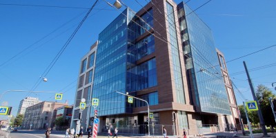 Проект выполнило ООО «Адамант-проект», входящее в группу «Адамант». Новое здание восьмиэтажное, преимущественно остекленное. Лицевой фасад выпирает за плоскость фасада, нависая над тротуаром.