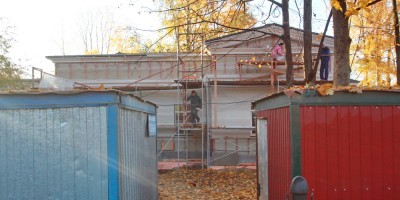 На берегу реки Крестовки достраивают хозяйственное здание