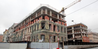 На углу Театральной площади и улицы Глинки завершилась реконструкция дома Мордвиновых под апарт-отель. Он был наполовину снесен, а корпус, выходящий на площадь, получил дополнительный этаж.