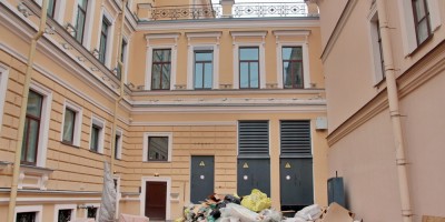 Сейчас реконструкция внешне завершена: фасады освобождены от лесов, выполнено благоустройство территории. На свое место в курдонере вернулся фонтан.