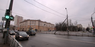 На углу улицы Коммуны и Ириновского проспекта завершилось строительство жилого дома. Он расположился на месте сквера.