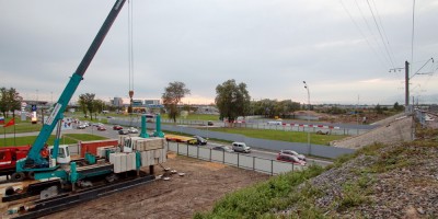 Над Пулковским шоссе у Порховской улицы приступили к строительству временного железнодорожного путепровода. Он необходим, пока рядом будут менять постоянный мост.