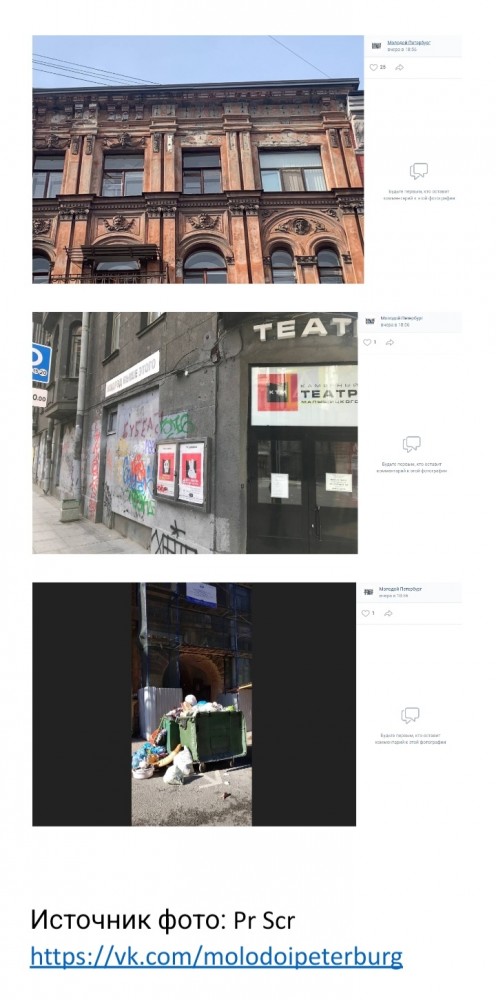 Активисты уверены, что если бы губернатор Александр Беглов, сотрудники Смольного и районных администраций делали пешие обходы по городу, они давно бы увидели, что исторический центр Петербурга похож на трущобу, превращающуюся в руины. Они посоветовали чиновникам выйти из кабинетов и посмотреть, что происходит в Северной столице.