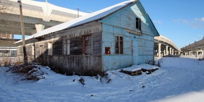 Одноэтажный деревянный дом был построен в 1951 году. Каково было его назначение, неизвестно. В 2013 году вокруг здания построили развязку Приморского проспекта и Западного скоростного диаметра, при этом само здание сохранилось. До последнего времени оно стояло заброшенным.