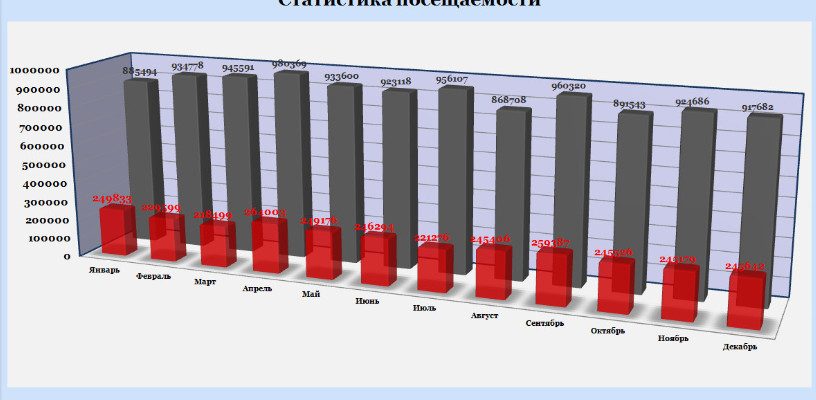 Показатель посещаемости сайта – это стабильное значение, он составляет 7,5-8 тыс. уникальных посетителей. Пользователи в сутки делают порядка 28700 просмотров. В месяц количество просмотров может достигать отметки в 1 миллион.