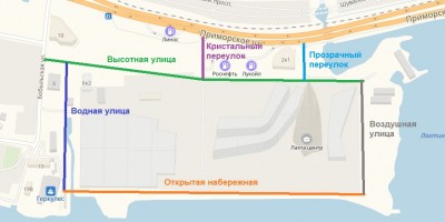 Два переулка между Приморским шоссе и Высотной улицей сделают Кристальным и Прозрачным — каковыми являются стекла небоскреба.