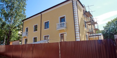 К настоящему времени работы не завершены, строительный забор и леса не убраны.