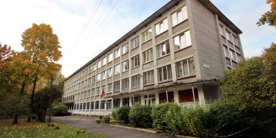 Типовое четырехэтажное здание в форме буквы П было построено в 1967 году. Оно расположено почти на углу проспекта Пархоменко и Болотной улицы. В нем располагалась гимназия № 74.