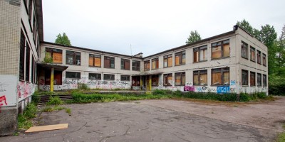 Типовой двухэтажный детский сад был построен в 1971 году. Он выполнен крупноблочным и в плане имеет форму буквы Н.