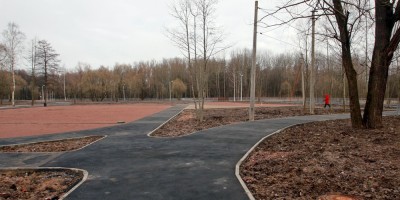 Корреспондент «Канонера», прогулявшийся в почти законченном сквере, обнаружил множество асфальтированных и мощеных дорожек, большие площадки, засыпанные гранитной крошкой, а также газоны с сохраненными деревьями. По периметру установили невысокий заборчик. А вот пруд перед домом 88, корпус 2, засыпали.