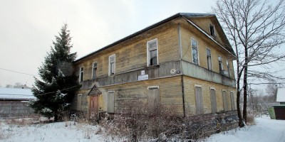 Двухэтажное деревянное здание было построено до революции. Его фасады были лишены элементов отделки (возможно, их сняли в советское время). Объект находился в удалении от проспекта, но с него просматривался.