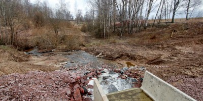 В Петергофе кто-то неизвестный запрудил безымянный ручей. «Перепропускное устройство» появилось на том месте, где прежде находился взорванный мост Оранэлы.