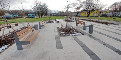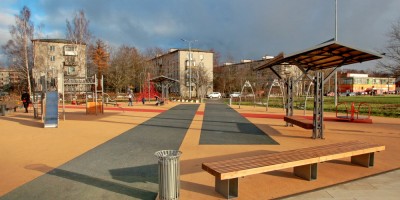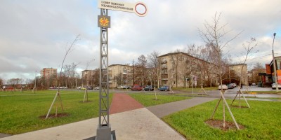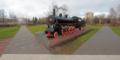 В Петергофе переделали сквер Военных Железнодорожников на улице Халтурина. Дорожки в нем замостили плиткой, а в центре установили схематичный паровоз.