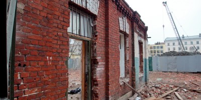 Во дворах на 19-й линии Васильевского острова частично разобрали дореволюционное здание. Представитель подрядчика утверждает, что речь идет о ремонте, а не о полном сносе.