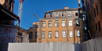 О том, что дальний дворовый флигель дома 21 по Тележной улице показывает крен в сторону котлована стройки, «Канонер» сообщил в феврале. Рядом ООО «Бизант», входящее в Glorax Group, возводит жилье. На время решения вопроса о судьбе флигеля работы были остановлены.