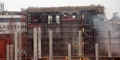 В конце ноября корреспондент «Канонера» обратил внимание, что здание завершают. Сейчас оно одето в лесах, смонтированы конструкции навесного фасада. Официальный представитель ООО «Максидом» (собственник территории) сказал сегодня «Канонеру», что здесь будет энергопункт. От подробностей он воздержался.