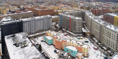 Во дворе нового жилого комплекса на Уральской улице завершилось строительство детского сада. Трехэтажное здание выполнили в модном сейчас «цветистом» облике.