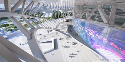 Однако, как выяснилось, сооружать будут арену с кардинально другим обликом. Его разработало австрийское бюро Coop Himmelb (l) au. В основе новой работы обильные металлоконструкции, которые существенно увеличивают объем здания.