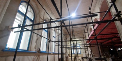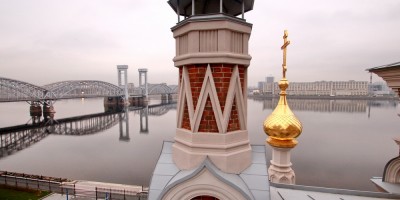 На проспекте Обуховской Обороны завершается воссоздание Скорбященской церкви. Здание выглядит уже готовым, и сегодня основные работы ведутся внутри. «Канонеру» удалось побывать в новом старом храме.