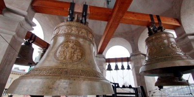 Отец Богдан передает меня в руки прораба Андрея, который, подобно герою одной известной философской притчи, на мой вопрос отвечает: «Я строю храм! Кстати, второй уже», — и провожает меня на колокольню. Там я впервые увидела церковные колокола так близко. Главный колокол уникален: на одной его стороне гравюра 1718 года с видом Петербурга, а с другой изображение города 300 лет спустя, современный вид; кажется, я даже разглядела «Лахта-центр».