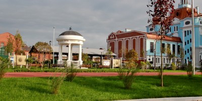 Кстати, одновременно со строительством нового корпуса и разбивкой сада отремонтировали также основное здание Нахимовского училища. Оно теперь имеет медный цвет кровли.