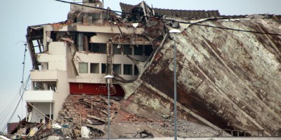 Как видно на кадрах с квадрокоптера, которые сделала «Фонтанка.ру», после обрезания очередного «ванта» кровля стала проваливаться, а фасад-кольцо — ломаться и падать. В итоге рухнул весь фасад.